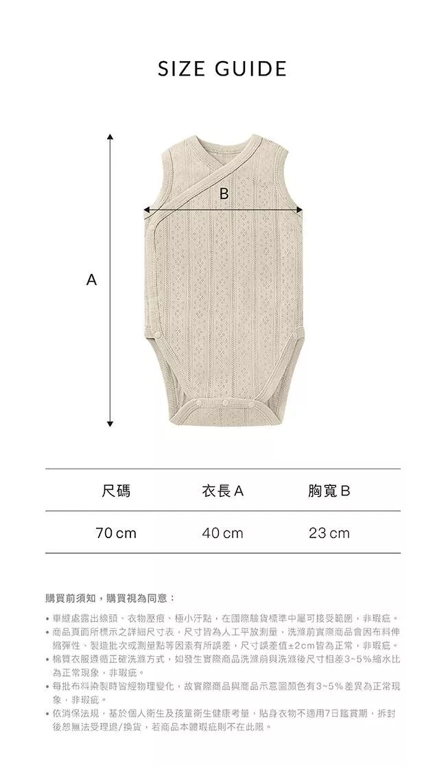 70cm:衣長約40±2cm/胸寬約23±2cm