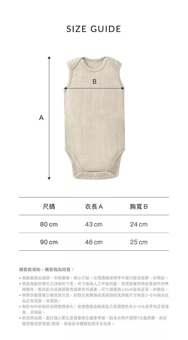 90cm:衣長約46±2cm/胸寬約25±2cm