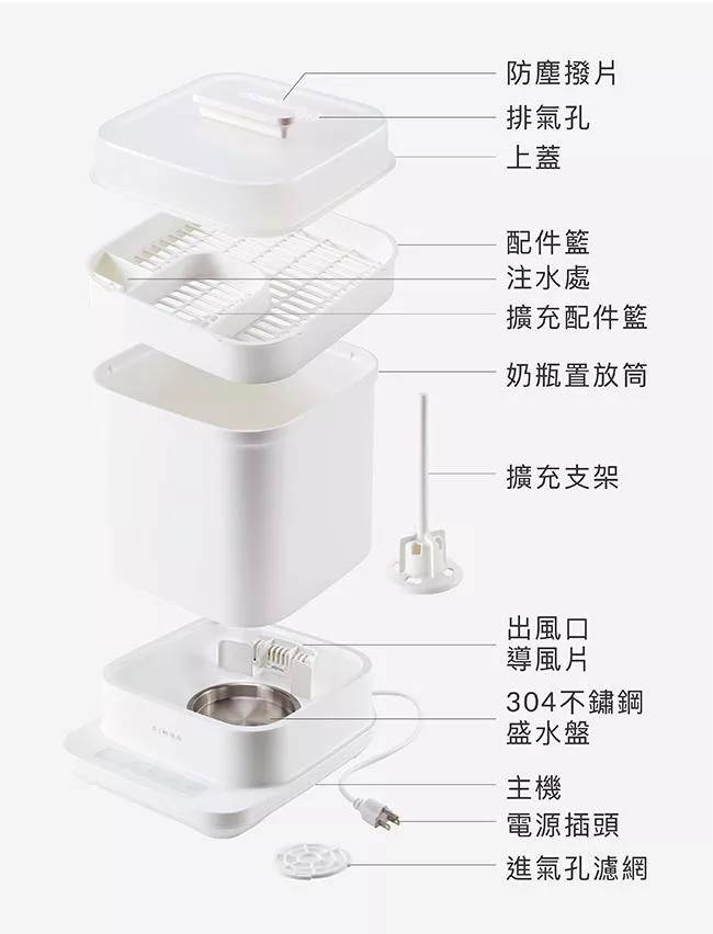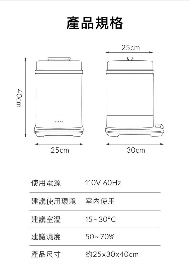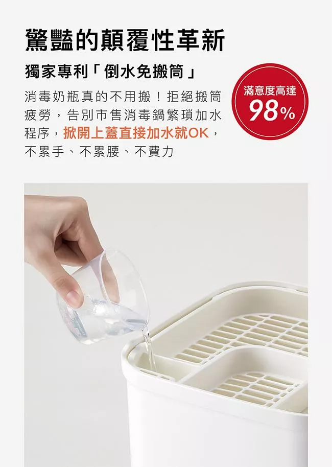 •本產品僅可使用水進行蒸氣消毒,請勿倒入如酒精、精油等任何易燃物質,以免發生危險。