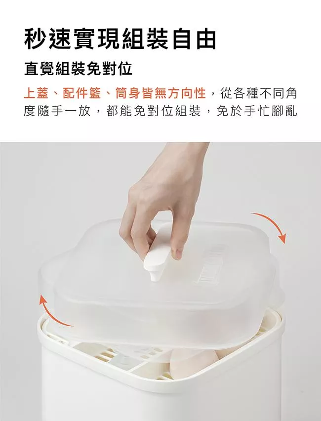 •上蓋、配件籃、筒身皆無方向性,直覺組裝免對位。