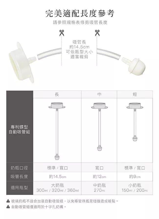 2.本產品為自動吸管替換配件,請依奶瓶大小適當裁剪。