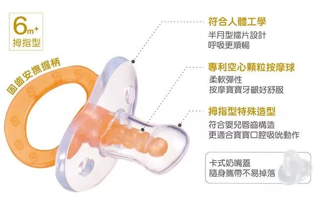 5.拇指型設計,符合嬰兒唇齒構造,更適合寶寶口腔吸吮動作。
