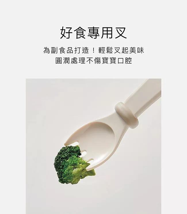 3. 專為副食品打造!輕鬆叉起美味,圓潤處理不傷寶寶口腔。
