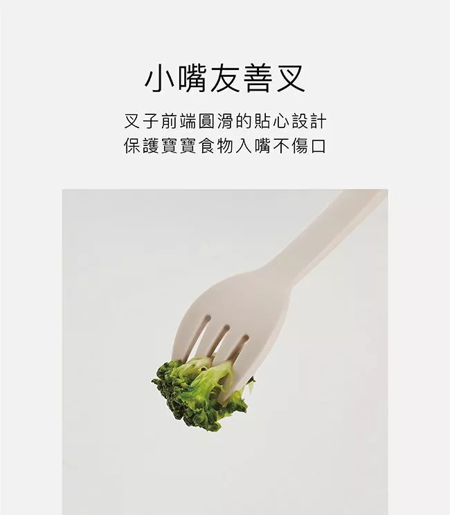 3. 叉子前端圓滑設計,保護寶寶食物入嘴不傷口。