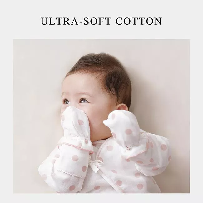 將肚衣平攤後將寶寶放於肚衣上方,套入雙手後將側邊綁帶綁好即完成。