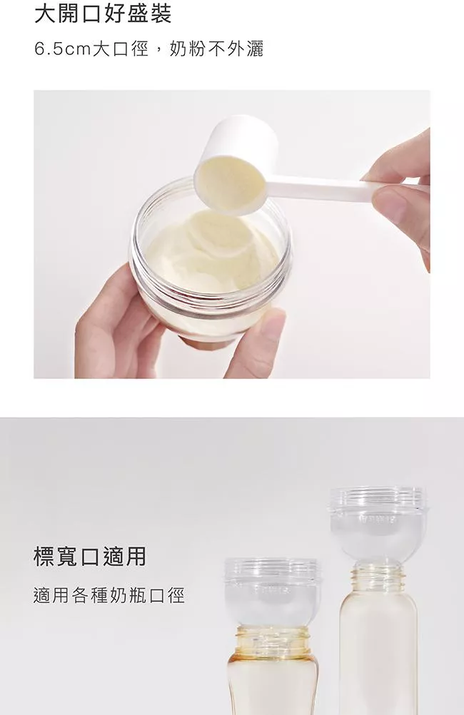 3.大開口好盛裝,寬標口適用,即開即用奶粉不外灑。
