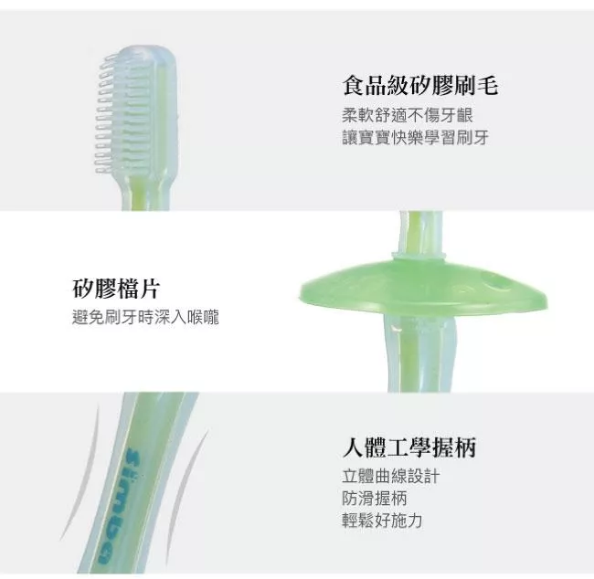 3.嚴選食品級矽膠刷毛,柔軟舒適,不傷牙齦,讓寶寶快樂學習刷牙。