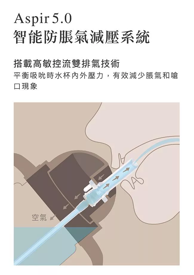 5.Aspir 5.0智能防脹氣減壓系統,平衡吸吮時水杯內外壓力,有效減少脹氣、嗆口現象。