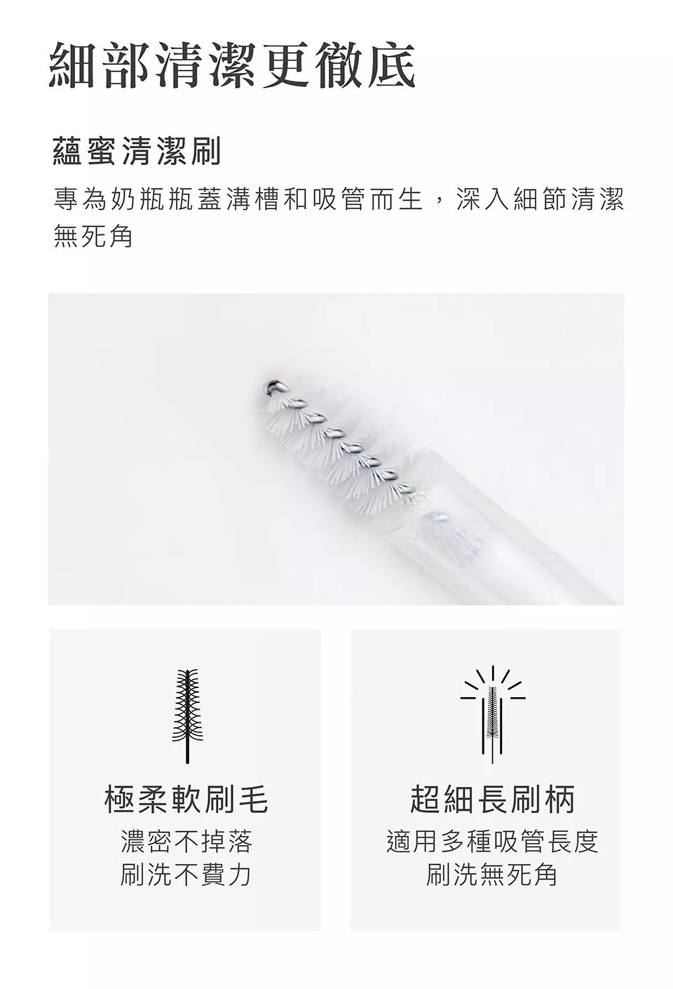2.超細長刷柄,適用多種吸管長度,刷洗無死角。