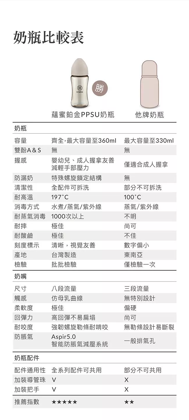 6.奶瓶容量、奶嘴尺寸、配件業界規格最齊全。