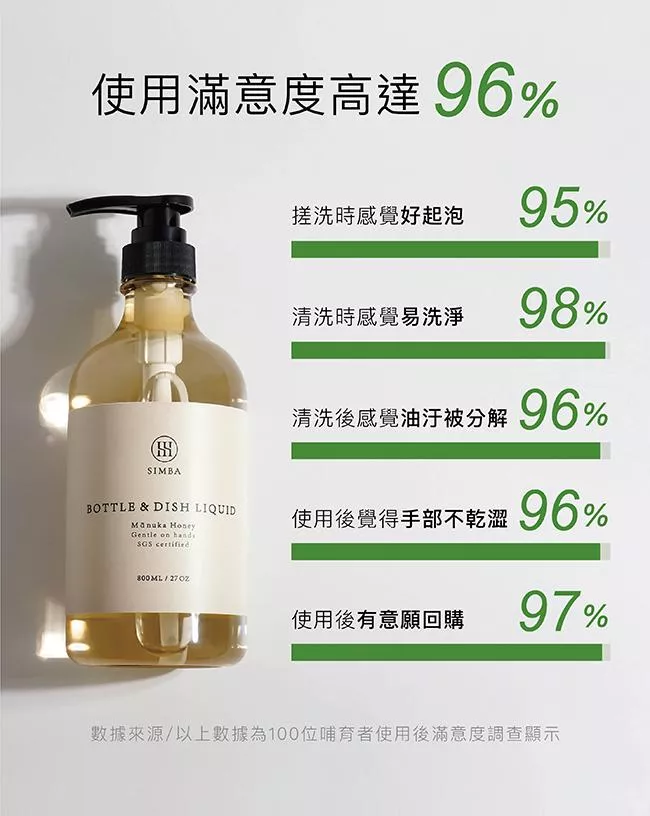 全成分:水、α-磺化-ω-烴基聚環氧乙烷-C10-16-烷基醚鈉鹽、D-葡萄哌喃糖C10-16-烷基糖苷、乙二胺四醋酸二鈉、檸檬酸、蛋白分解酵素/枯草桿菌蛋白酶、2-甲基異噻唑啉-3-酮、蜂蜜萃取(麥蘆卡蜂蜜)