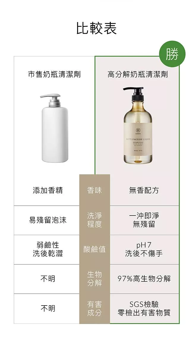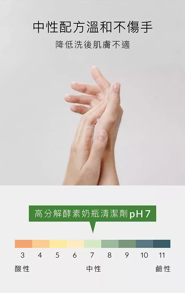 使用說明:1L水加入約3ml清潔劑(按壓一下),並搭配奶瓶刷清潔,再以清水洗淨即可。