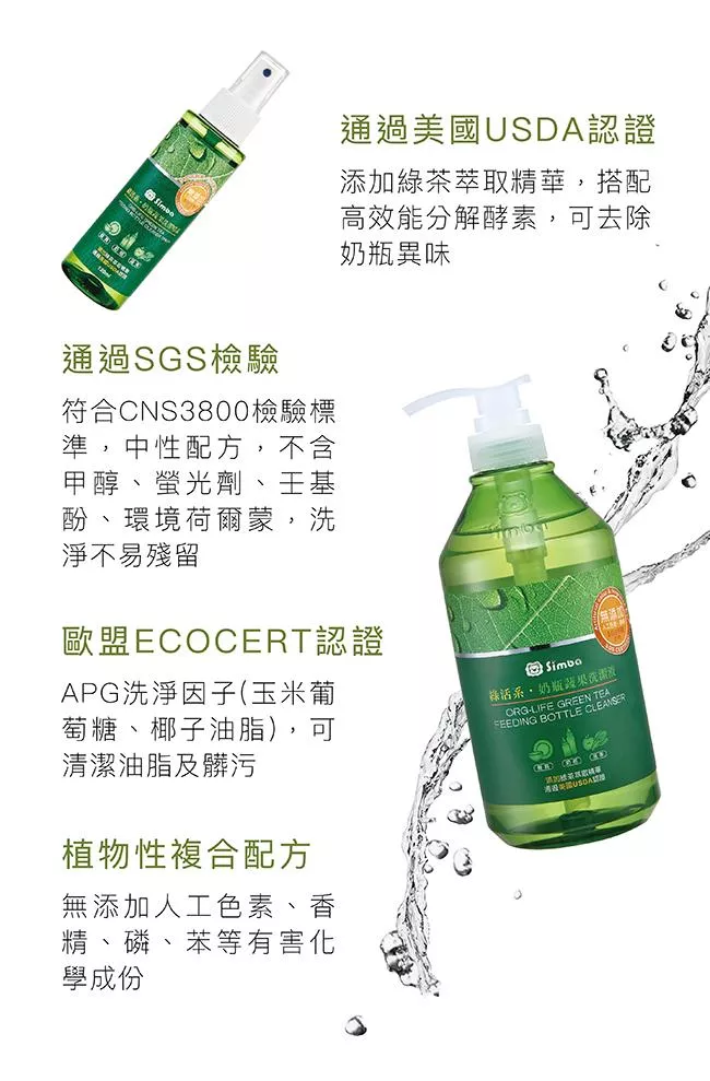 1. 添加綠茶萃取精華,通過美國USDA認證,搭配高效能分解酵素,可去除奶瓶異味。