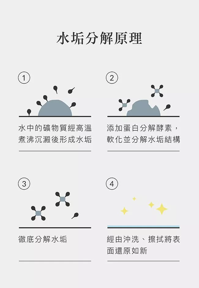 •如水垢難以去除,可適時添加劑量,並反覆清洗。