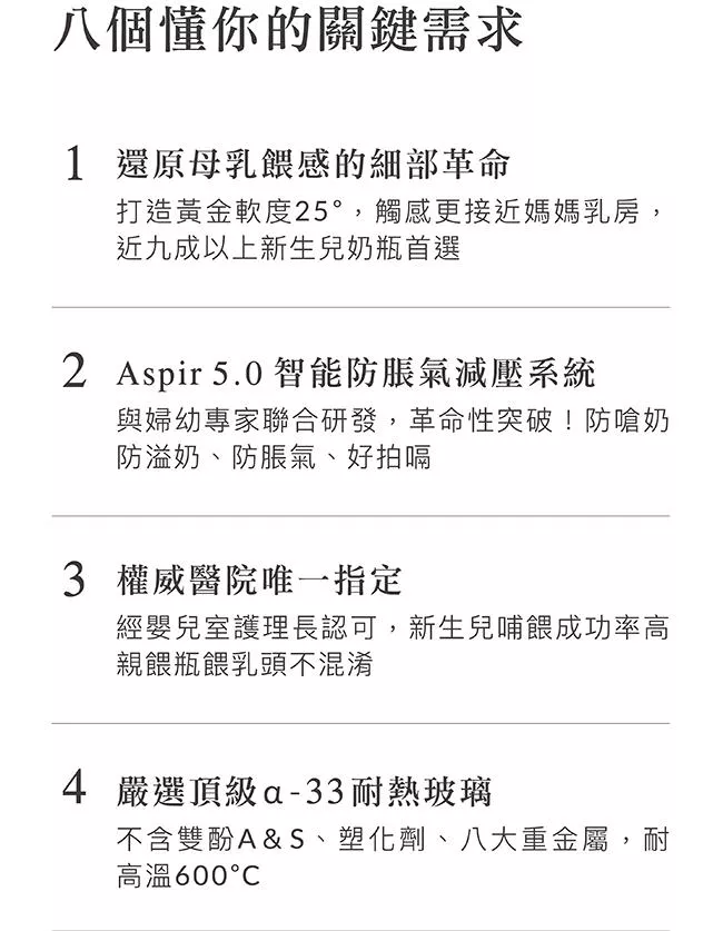 2.Aspir 5.0智能防脹氣減壓系統,防嗆奶、防溢奶、防脹氣。