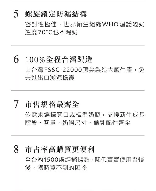 7.螺旋鎖定防漏結構,世界衛生組織WHO建議泡奶溫度70°C也不漏奶。