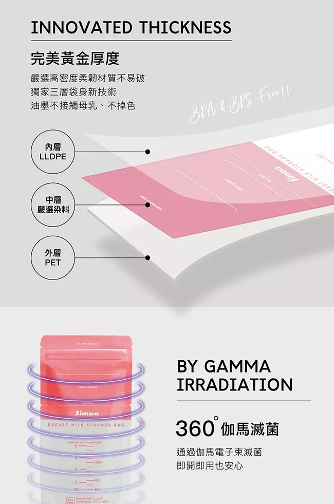 4.嚴選高密度柔韌材質更不易破,獨家三層袋身新技術,油墨不接觸母乳、不掉色。