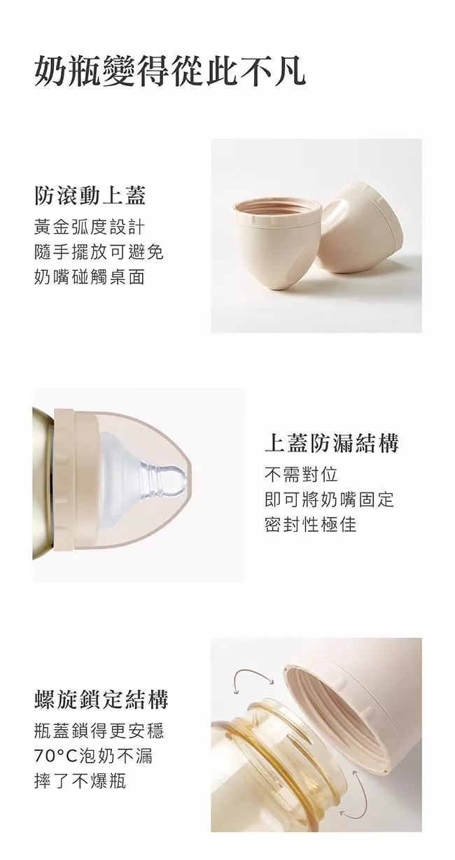 8.螺旋鎖定防漏結構,世界衛生組織WHO建議泡奶溫度70°C也不漏奶。