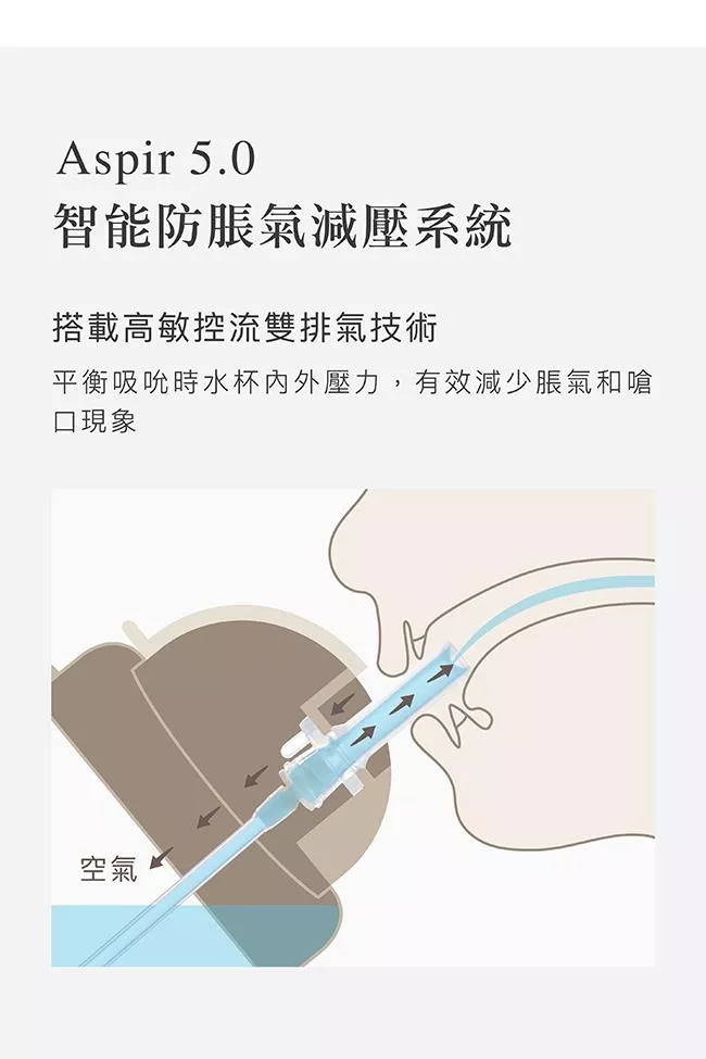 6.Aspir 5.0智能防脹氣減壓系統,有效減少脹氣、嗆口現象。
