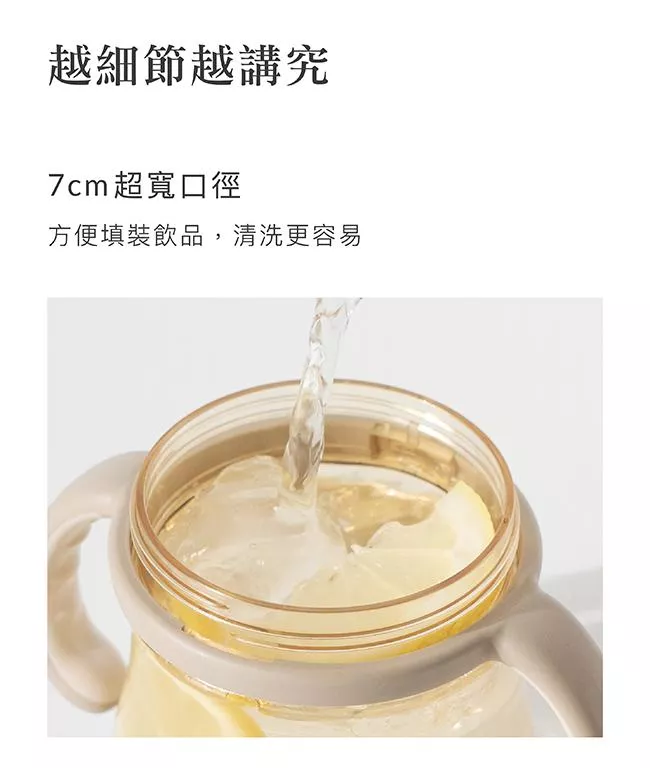 7.7cm超寬口徑,方便填裝飲品,清洗更容易。