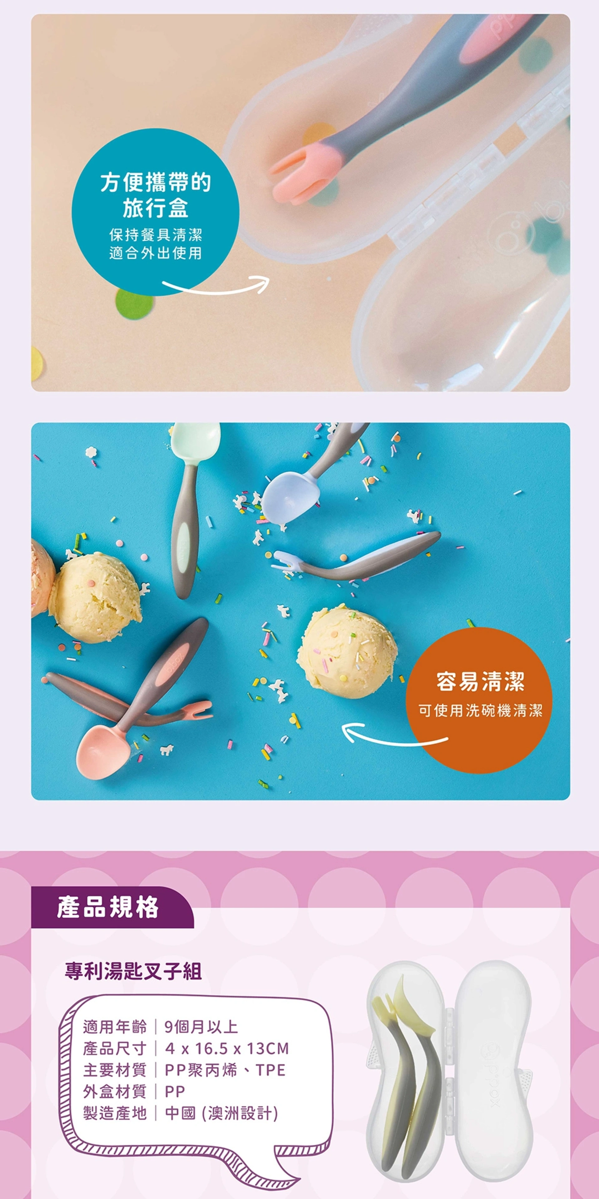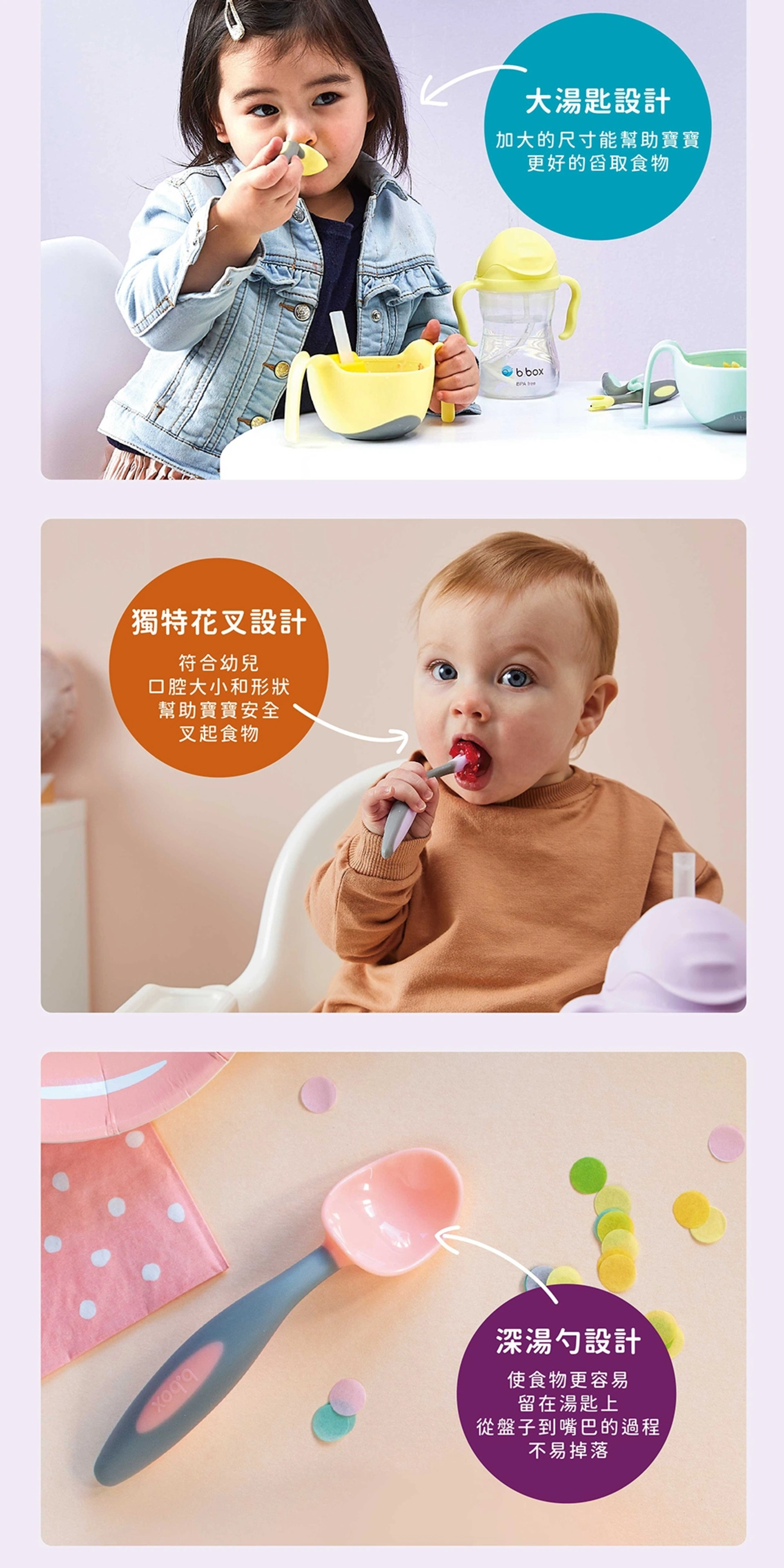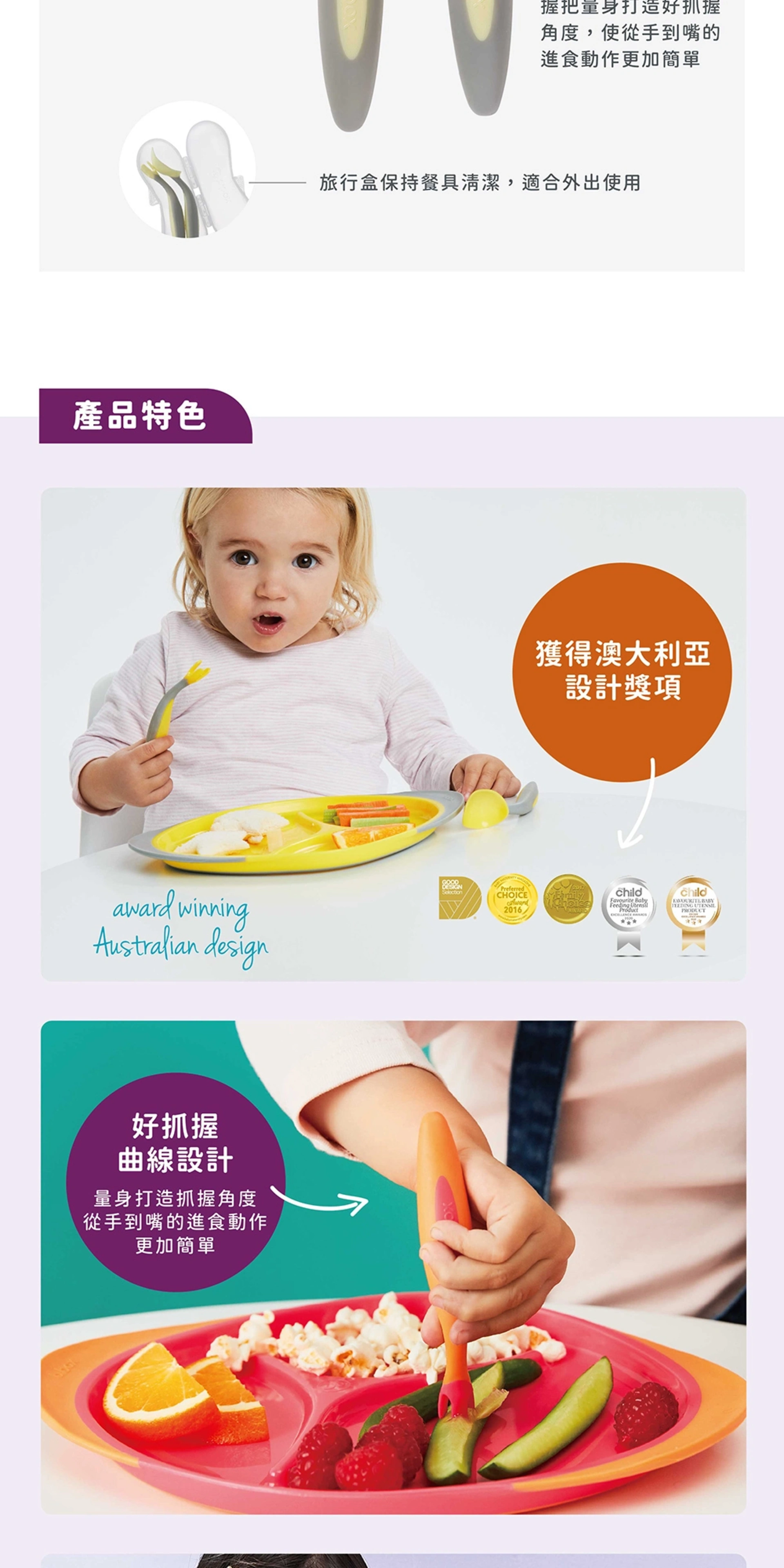 ・符合孩子嘴巴的尺寸和形狀,幫助孩子安全取用食物