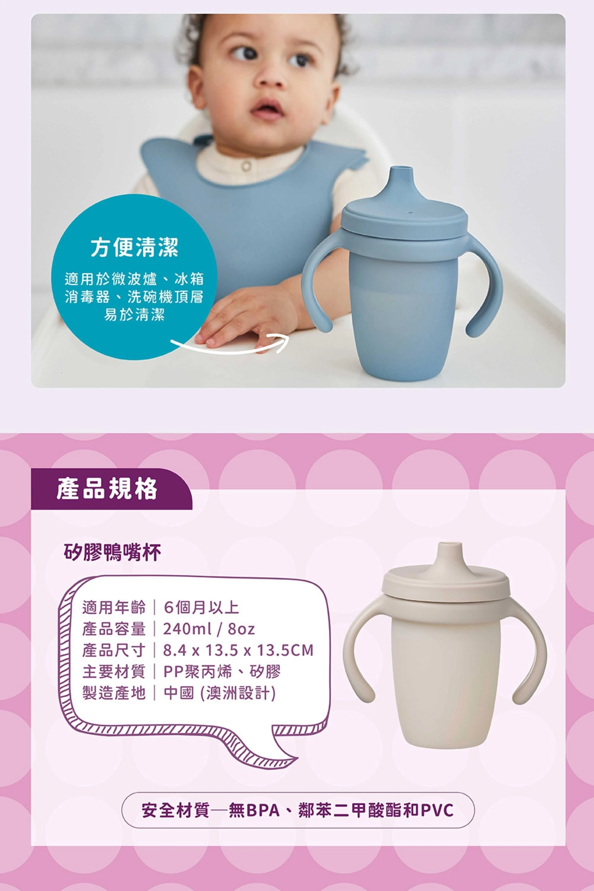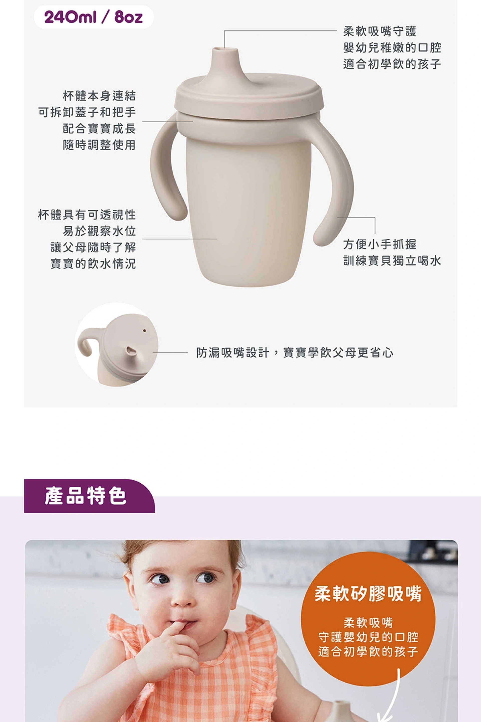 •易握把手,訓練寶寶自主喝水
