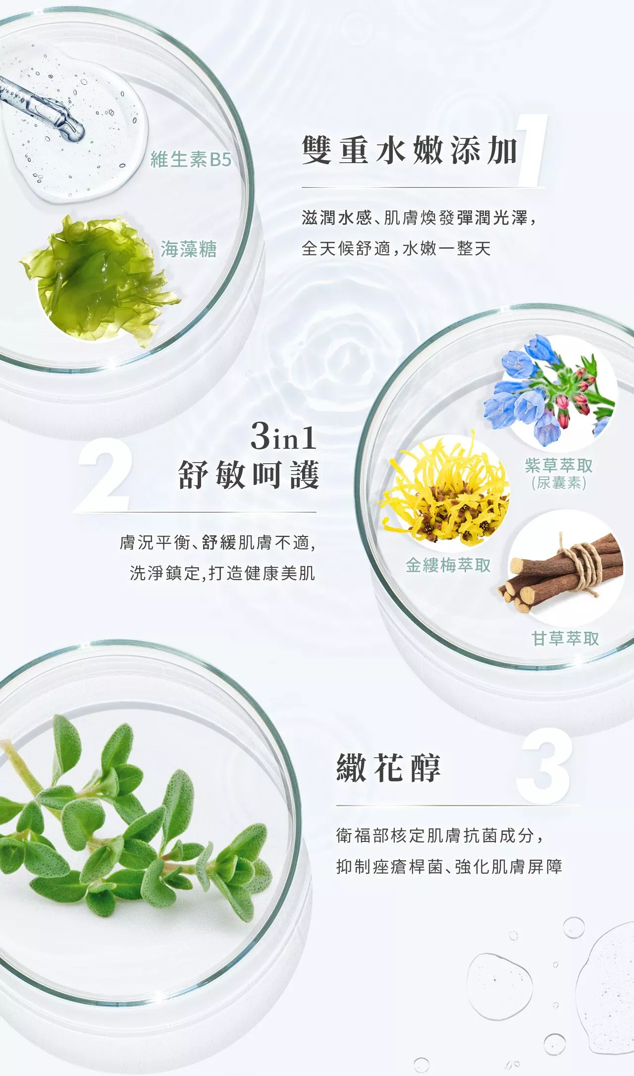•洗感再升級:維生素B5、海藻糖、金縷梅萃取