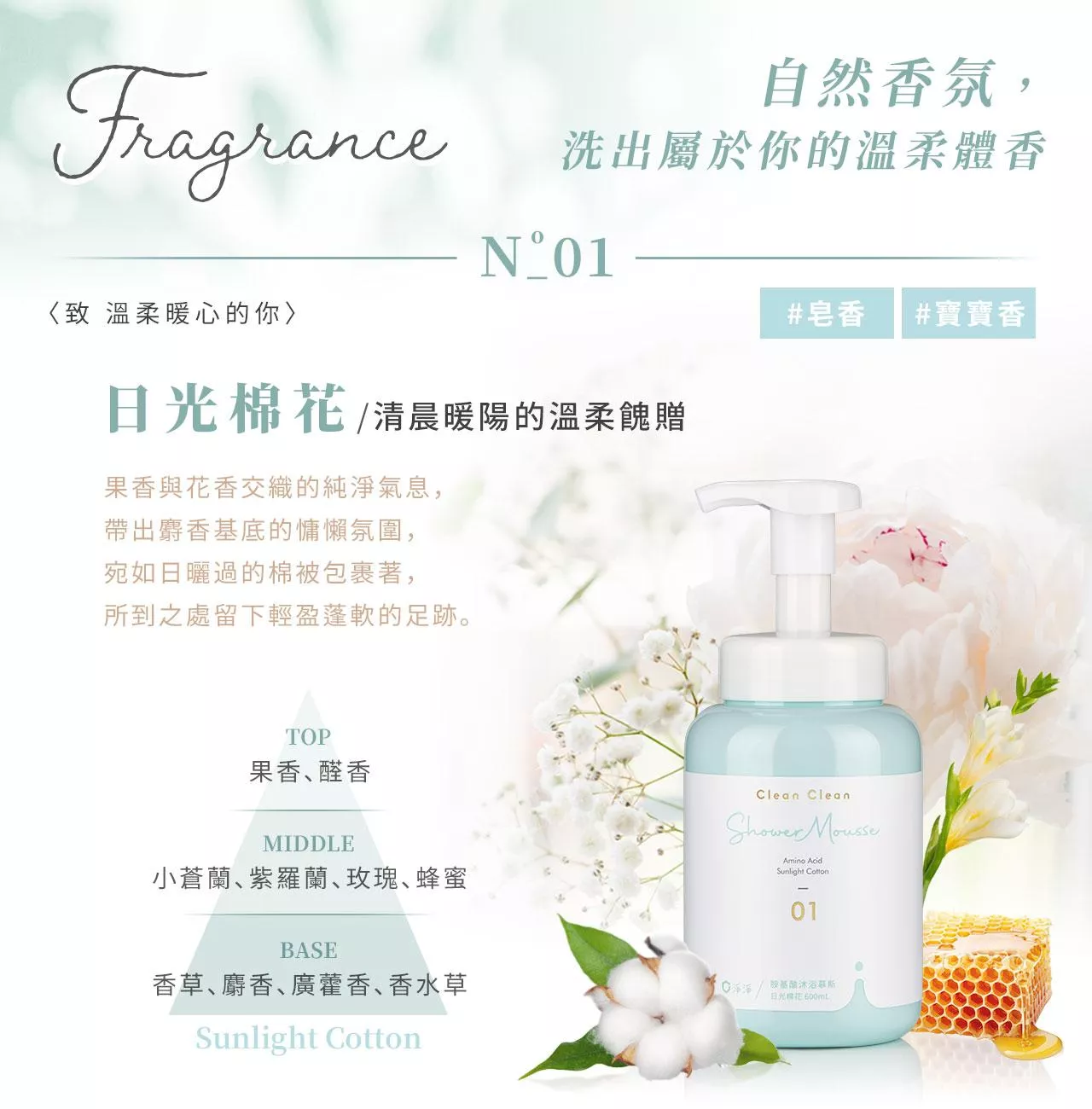 日光棉花:完美融合小蒼蘭、玫瑰、蜂蜜、廣藿香,彷彿沐浴在暖陽之下,舒緩又放鬆,給予絕佳的沐浴體驗