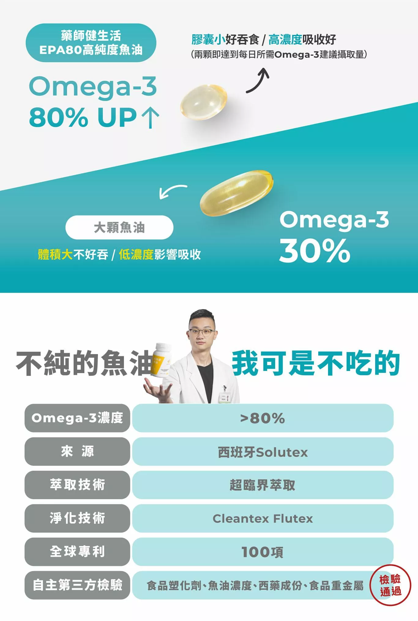 •Omega-3 濃度達80%