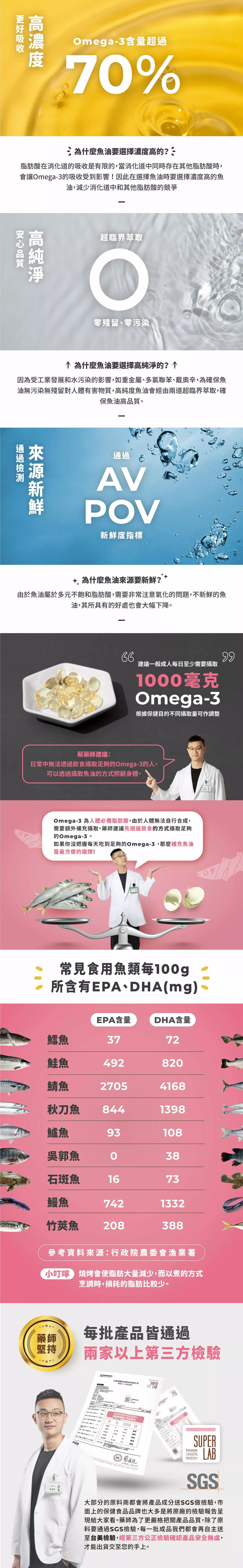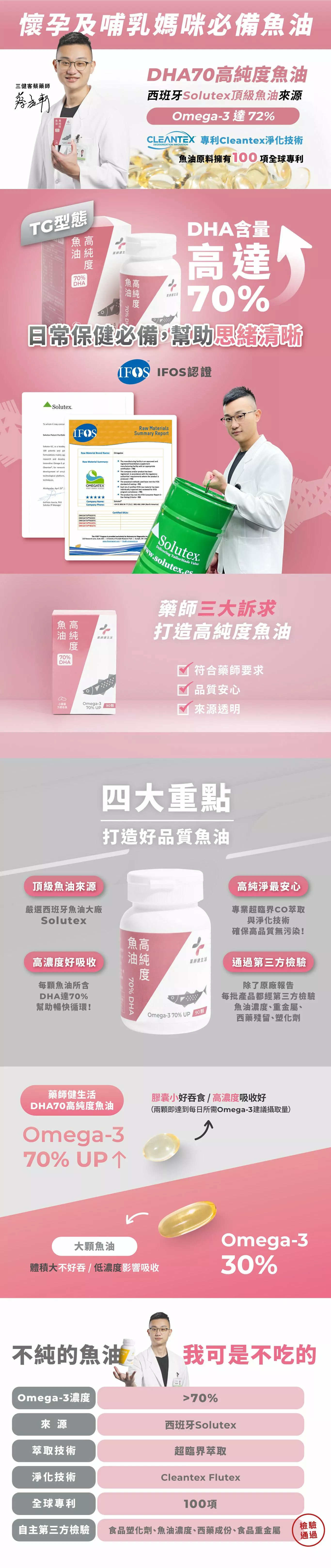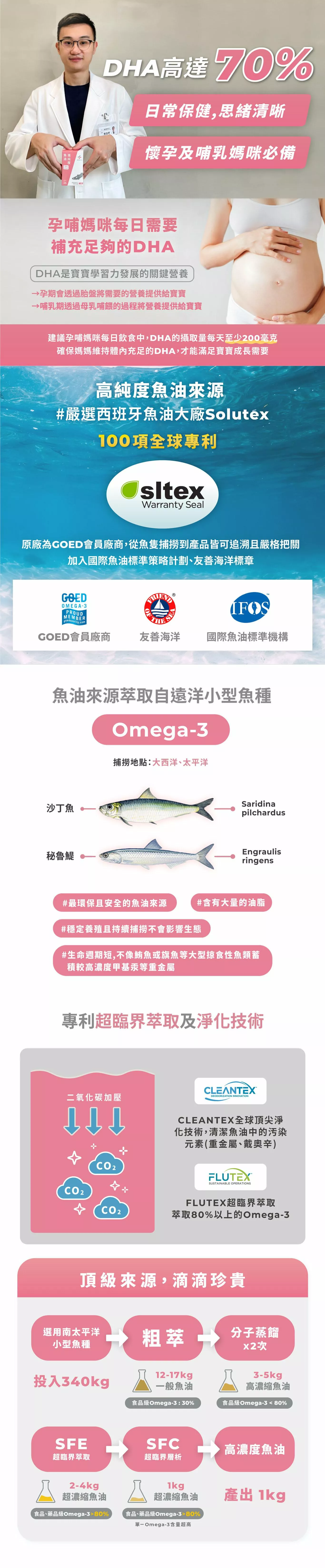 •DHA濃度達70%,純DHA幾乎不含EPA
