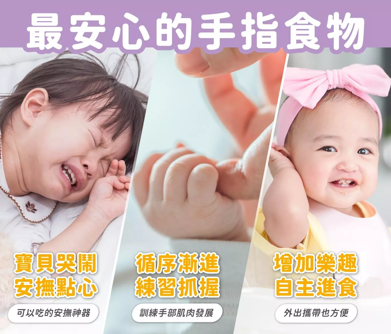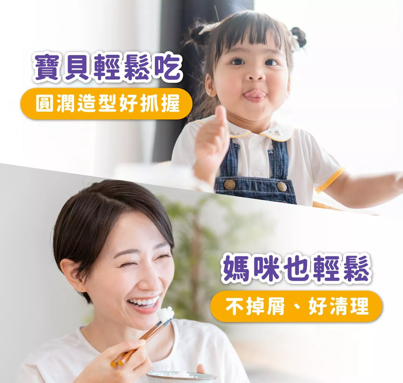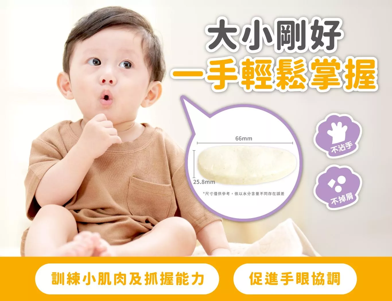 •不掉屑、寶寶輕鬆抓著吃,有助於促進小肌肉發展。