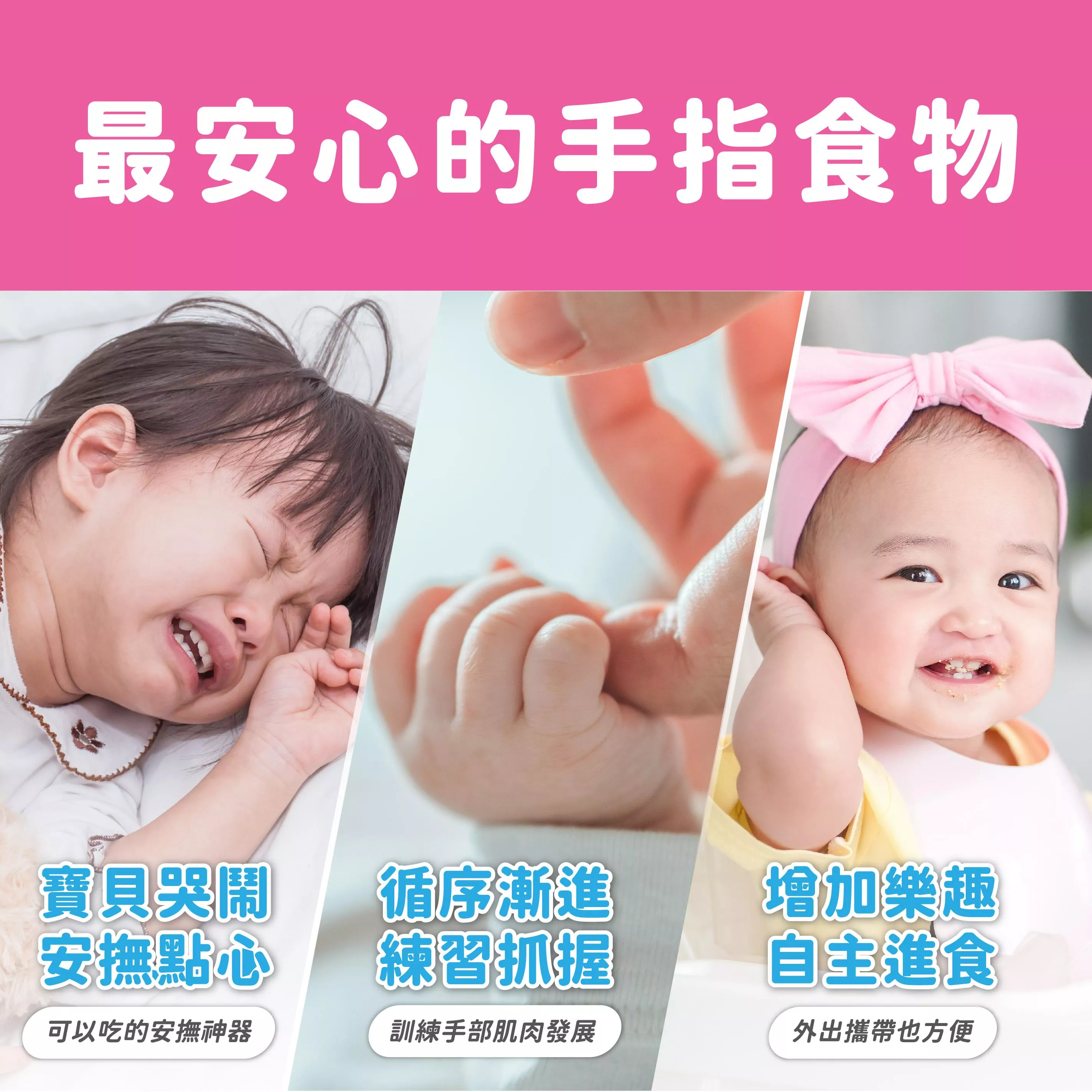 •不掉屑、寶寶輕鬆抓著吃,有助於促進小肌肉發展。