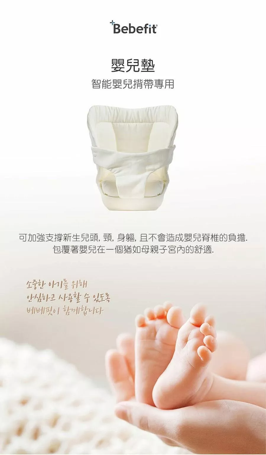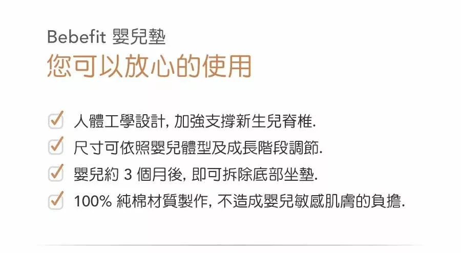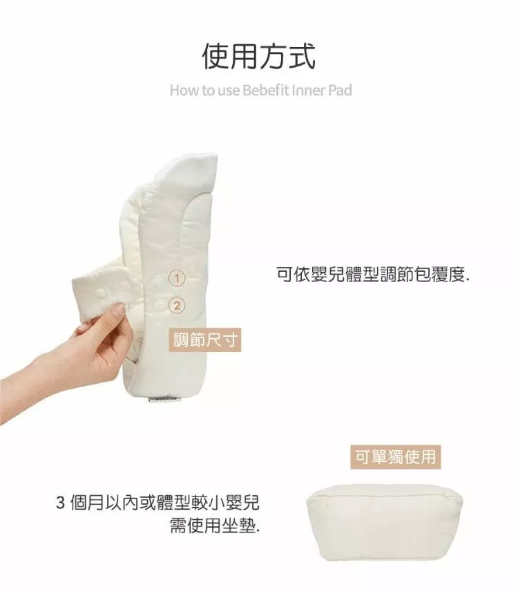 •加強支撐新生兒頭、頸、身軀(嬰兒0-6個月以內或頸部發育穩定度不足以前,請搭配智能揹帶使用)