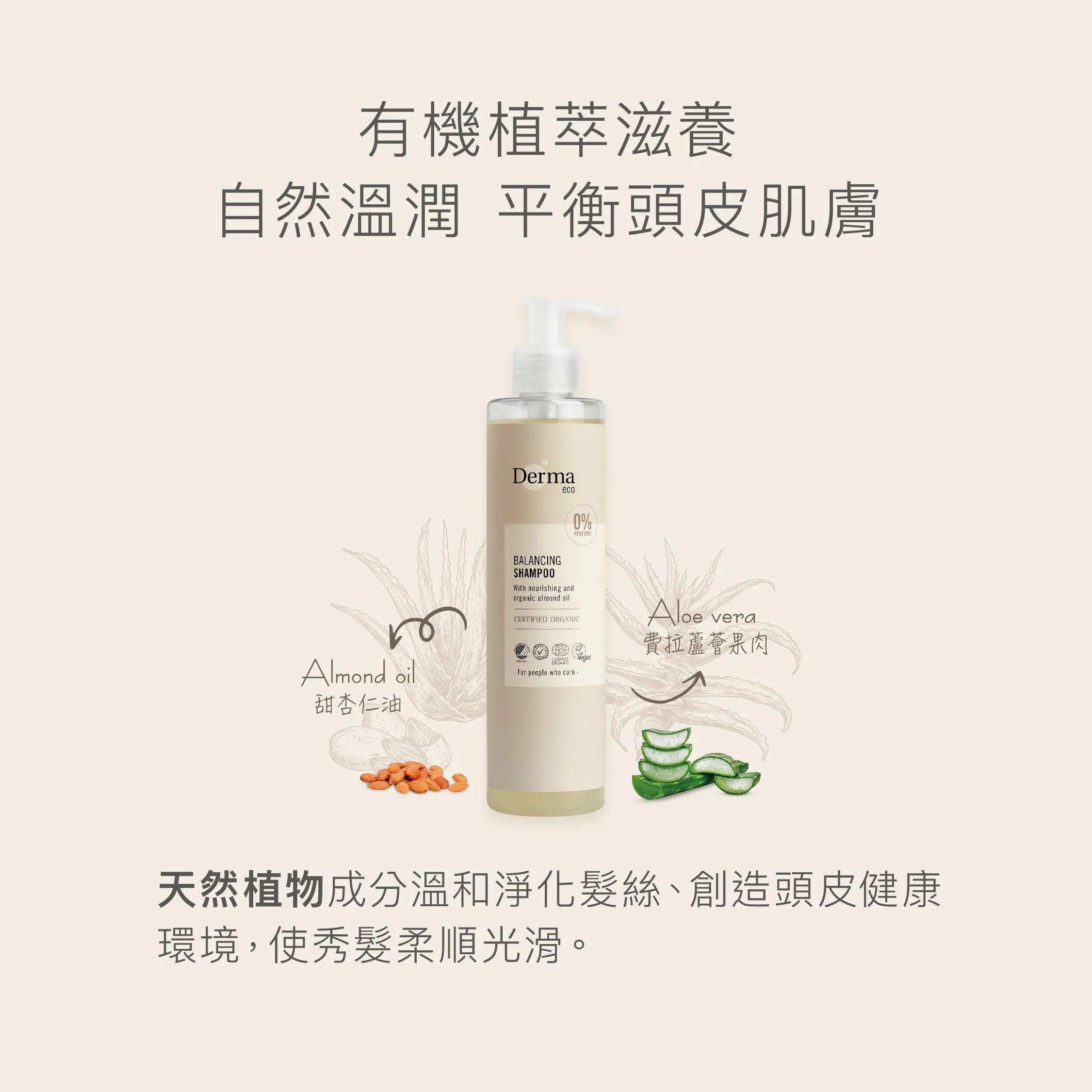 ・ 無香、有機、四項國際認證的高規格外,還取得了純素認證,是市面上獨一無二的平價純素洗護品!・ 堅持使用有機低致敏成分,及天然植萃精華滋養肌膚・ 添加有機蘆薈、杏仁油使髮絲柔順光滑・ 天然植物成分溫和洗淨,洗後蓬鬆豐盈