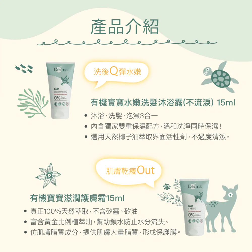 水嫩洗髮沐浴露15ml+滋潤護膚霜15ml