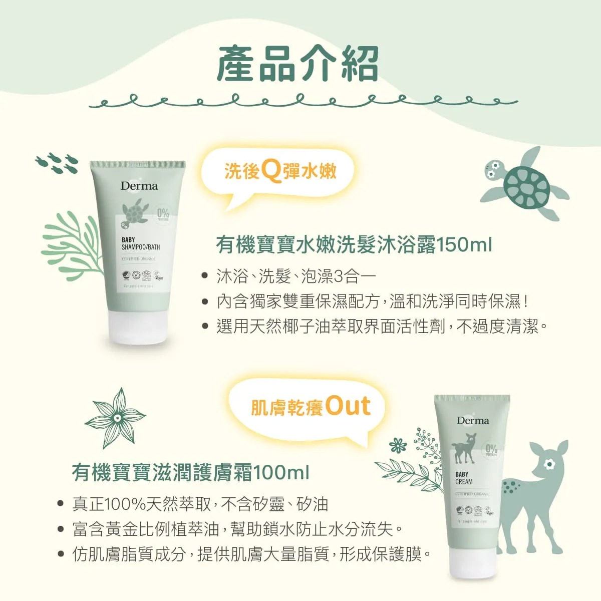 寶寶有機水嫩洗髮沐浴露150ml:洗沐兩用,不流淚配方,異膚敏感寶寶皆適用。