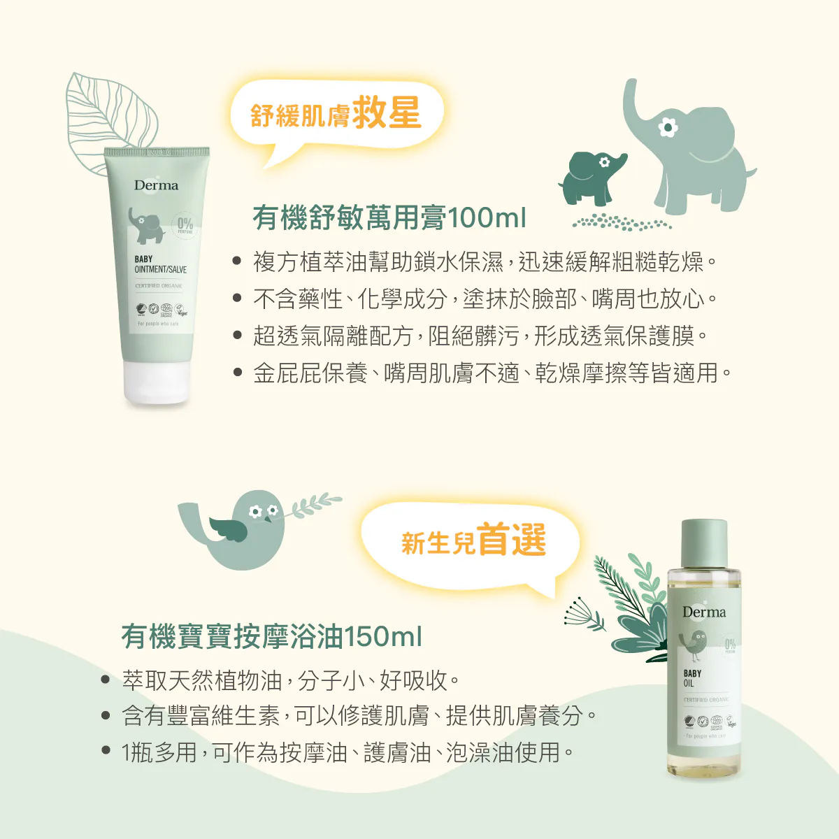 寶寶有機舒敏萬用膏100ml:溫和保護膜滋潤紅腫肌膚,適用於口水疹、尿布疹、瘀血或擦傷等需與水氣隔離的部位。