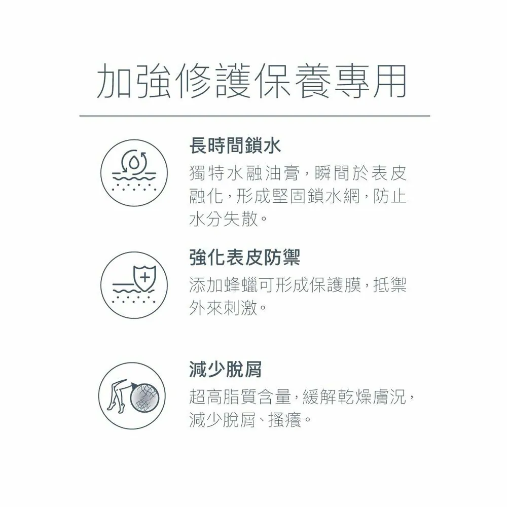 ・脂質含量高達 92%,潤澤修護,預防肌膚乾燥