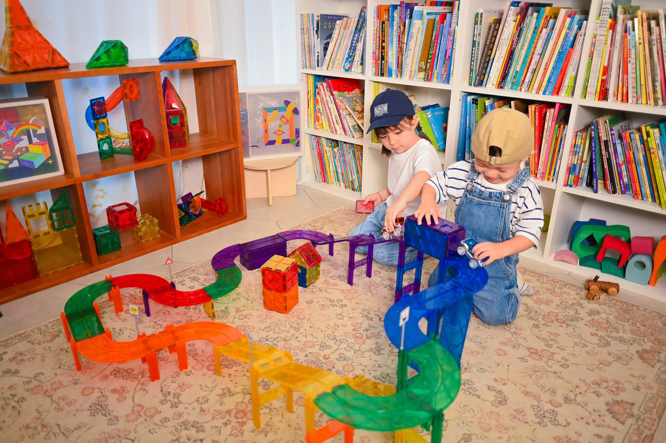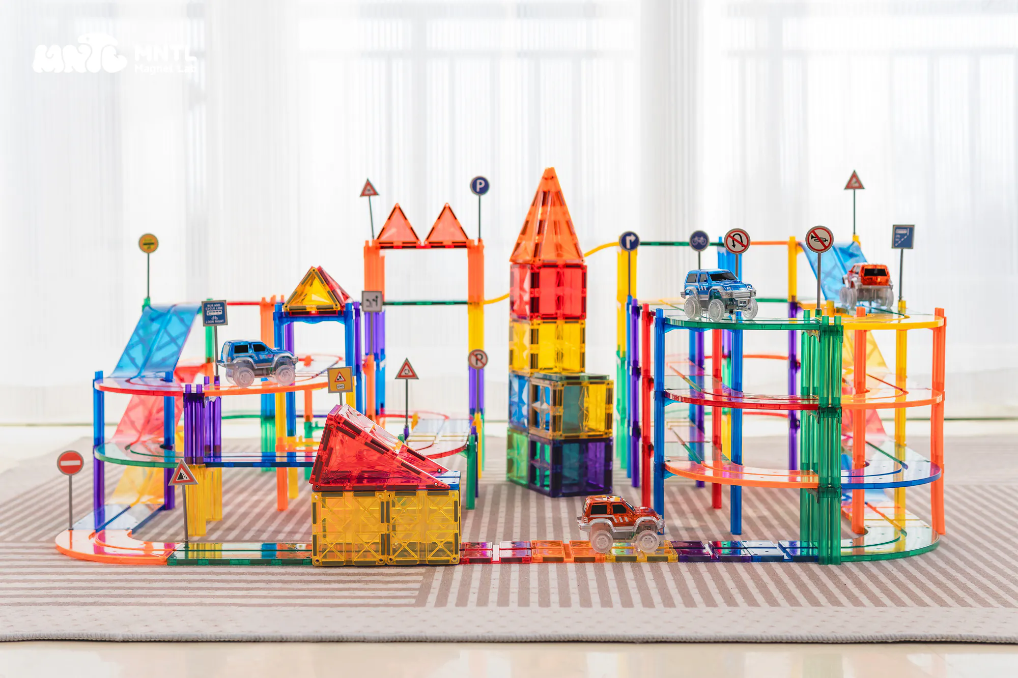 不同傳統的平面軌道,磁力拓荒者可以組出具有高低落差的立體賽道,看似簡單,但其實是非常需要動腦思考的組合喔。