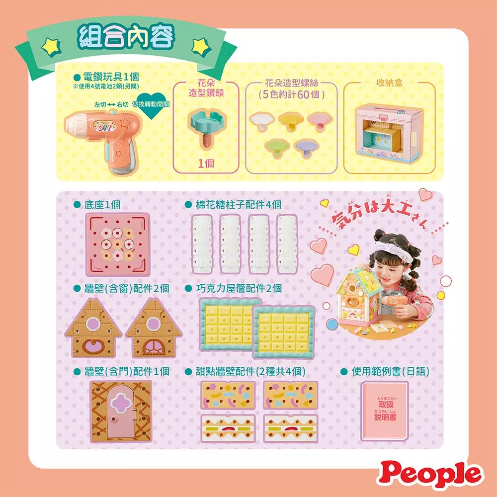 內附電鑽玩具、花朵造型螺絲、甜點花樣板子…等豐富配件,