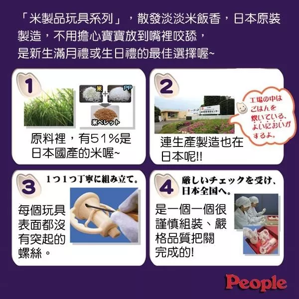 「米製品玩具系列」原料裡,有51%是日本國產的米喔~ 不只是使用日本米,連生產製造也在日本呢!!
