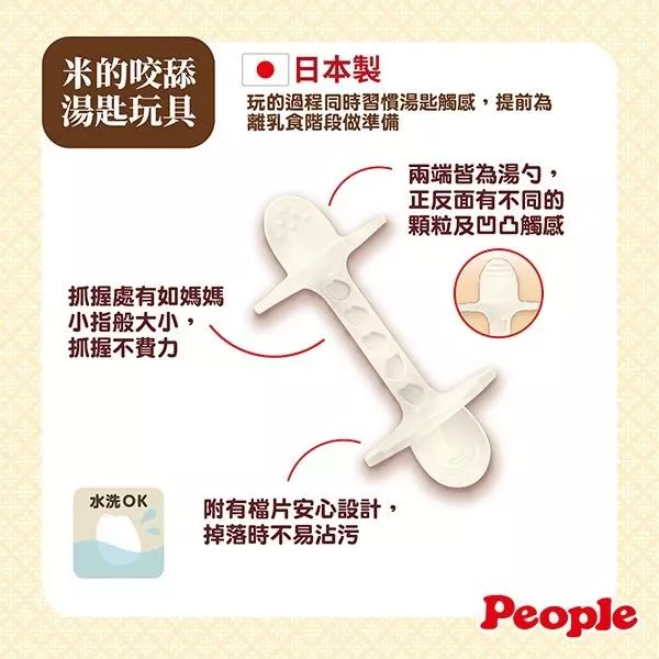 玩的過程同時習慣湯匙觸感,提前為離乳食階段做準備。水洗OK!