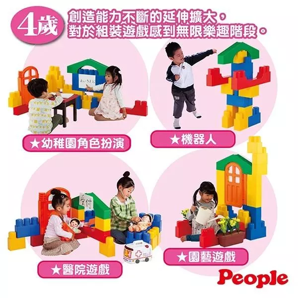 4歲: 創造能力不斷的延伸擴大,對於組裝遊戲感到無限樂趣階段。