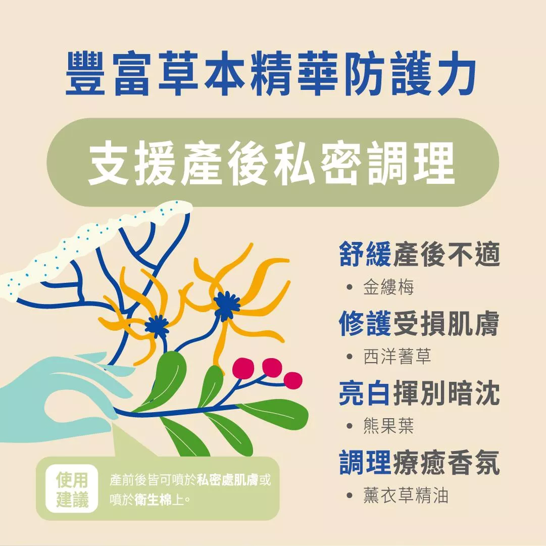 ▪ 每日可多次適量噴於私密處或護墊上,讓產後護理更便利。