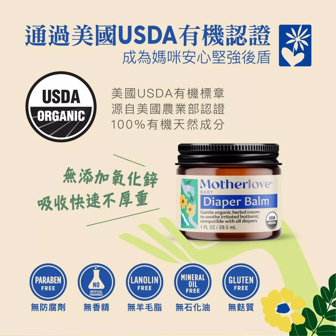 天然有機調製配方,可舒緩寶貝包尿布產生的紅屁屁肌膚,於出生即可使用。嚴選多項修護草本成分-奧勒岡葡萄根、金盞花、西洋蓍草,對於寶寶稚嫩肌膚提升防禦力,多一層會呼吸的保護膜。