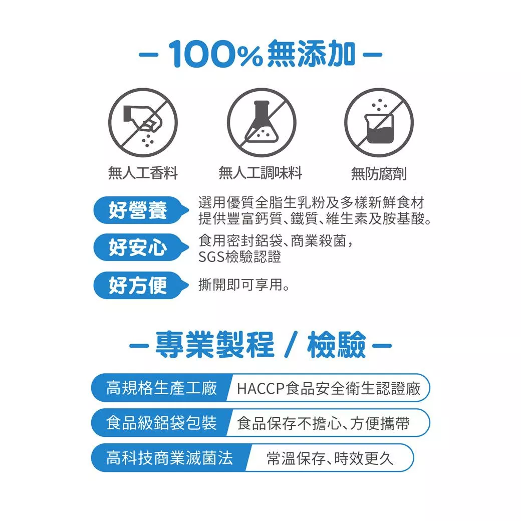 1.無添加:100%無添加 (無防腐劑、無色素、無香料)
