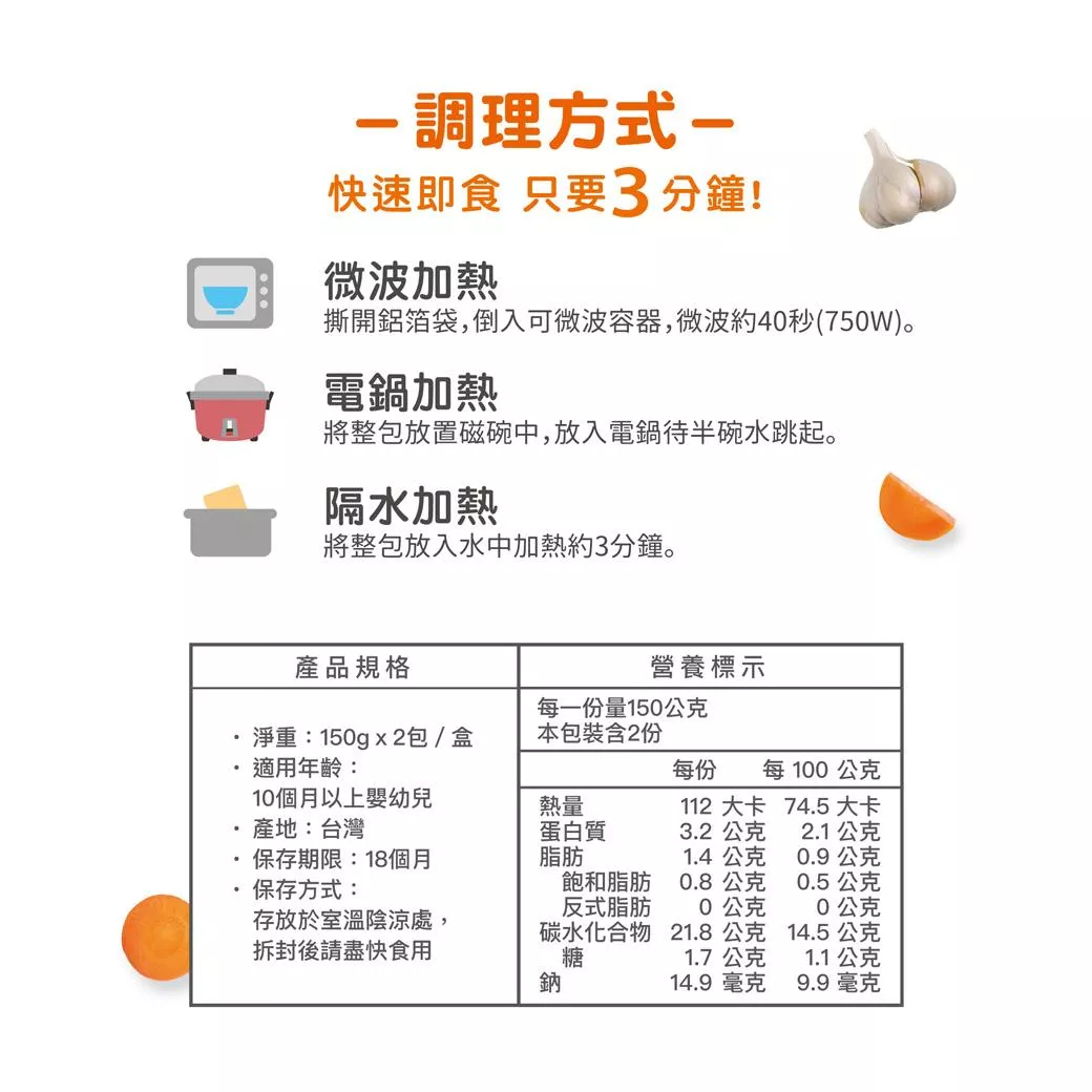 ▪ 快速即食-隔水加熱只要三分鐘!