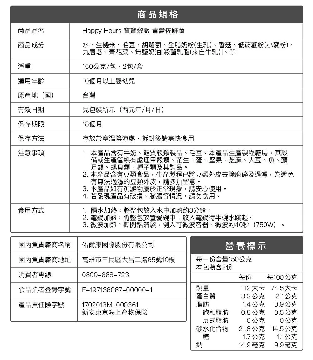 ▪ 適用年齡:10個月以上嬰幼兒