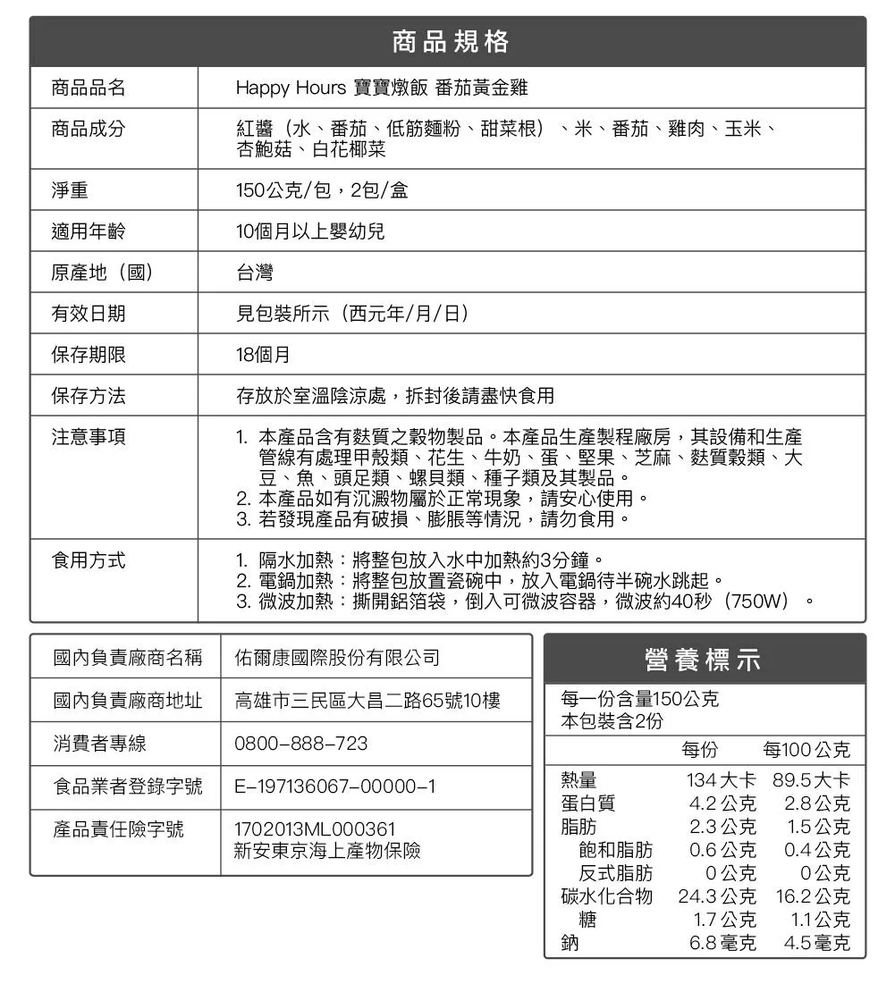 ▪ 淨重:150公克/包,2包/盒