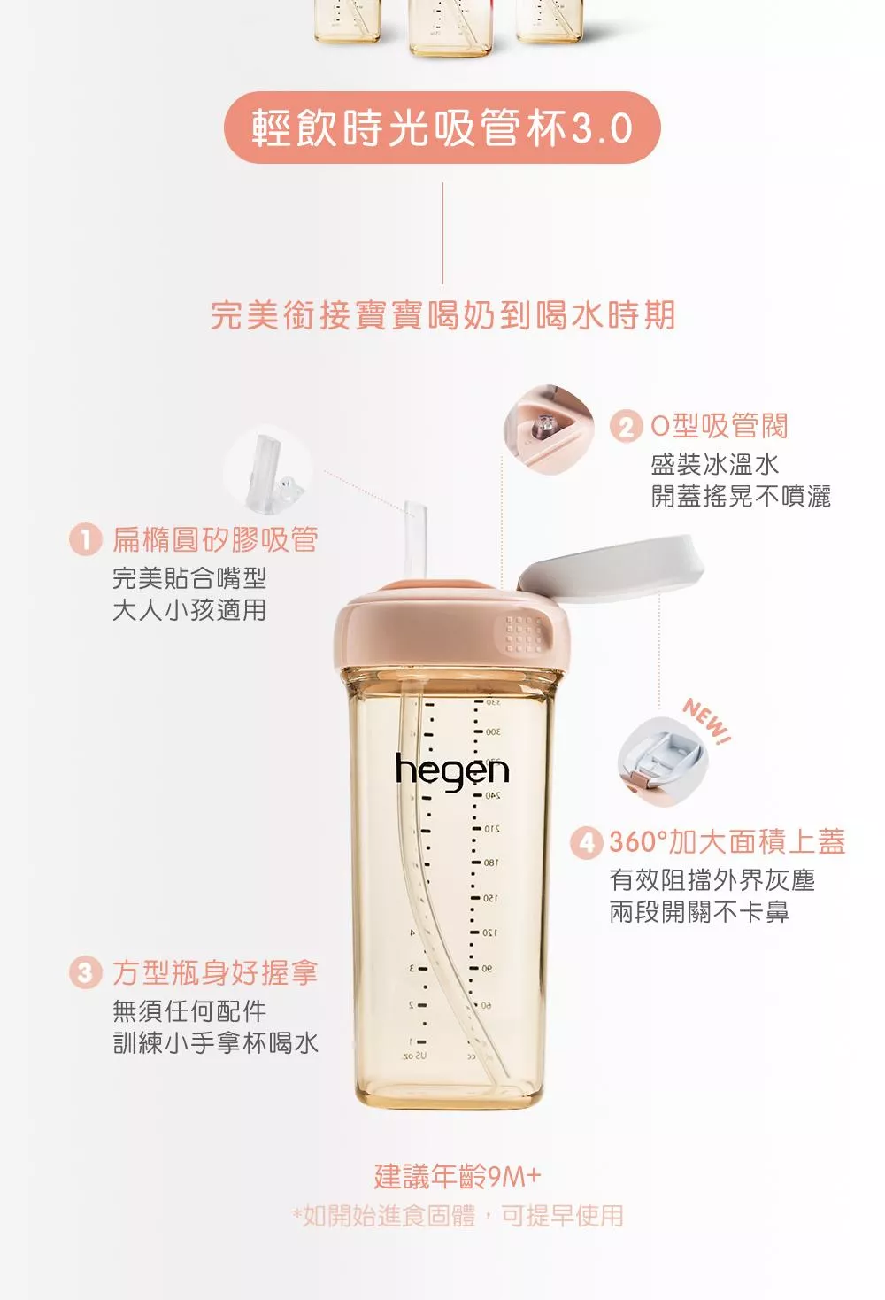 O型吸管閥,寶寶無痛練習喝水,從hegen吸管杯開始!